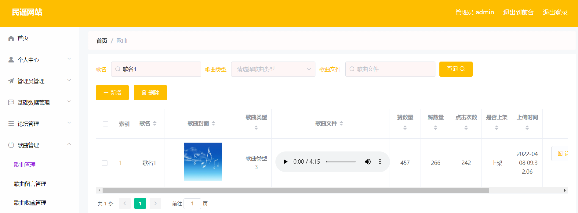 本系统主要功能需求包括歌曲信息管理、歌曲留言管理等模块。其中,密码信息、用户信息、歌曲信息、歌曲留言信息等都是非常重要的数据记录,在系统设计的过程中,需要进行一定的加密处理,确保数据安全性,切实的保护好用户的重要信息。